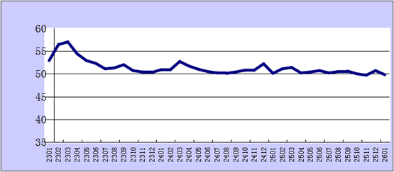 2023年1月-2026年1月综合PMI产出指数走势图